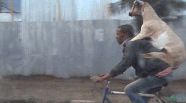 Um casal na Etiópia flagrou uma cena no mínimo inusitada, de uma cabra andando montada nas costas de seu dono em cima de uma bicicleta. O caso foi registrado em Adis Abeba, capital do país, e mostra o homem pedalando ao stilo velozes e furiosos e o animal bem tranquilo ali dependurado nas costas, por mais estranho que isto soe.