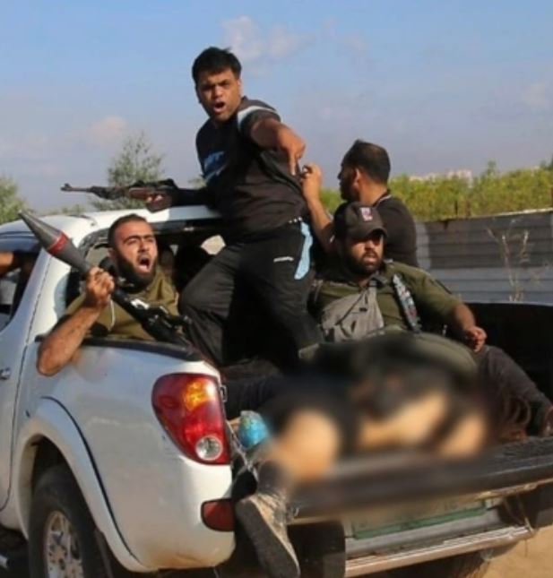 A vítima foi sequestrada, torturada e exibida seminua na caminhonete de um carro repleto de terroristas do Hamas armados, que comemoravam o ataque a Israel.