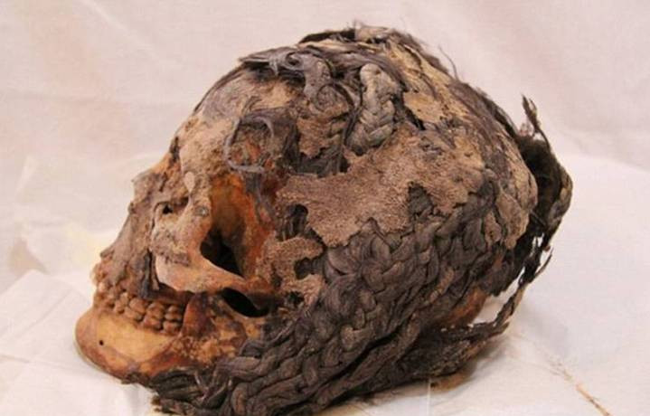 O esqueleto de mais de 3 mil anos encontrado, o cabelo estava bem preservado e mostrava um aplique composto por 70 extensões juntas.