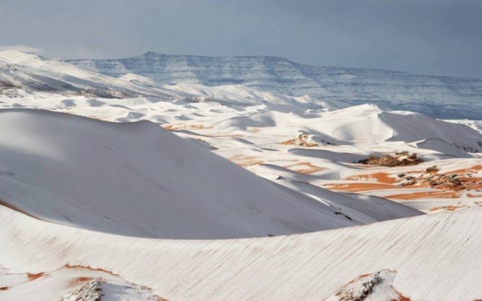 Algumas áreas do Saara registraram 40 cm de neve, ao mesmo tempo em que os habitantes da costa leste dos EUA lidam com um período de frio extremo.