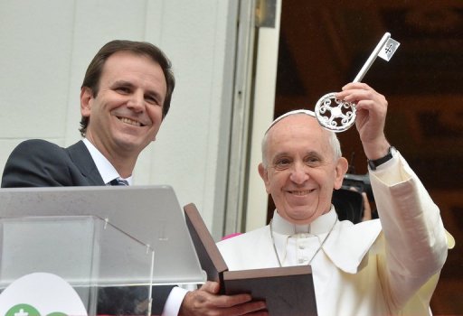 "É preciso oferecer uma dúzia de ovos à Santa Clara" para que pare de chover, disse o Papa a Eduardo Paes durante visita ao Palácio da Cidade, sem perceber que o microfone estava aberto.