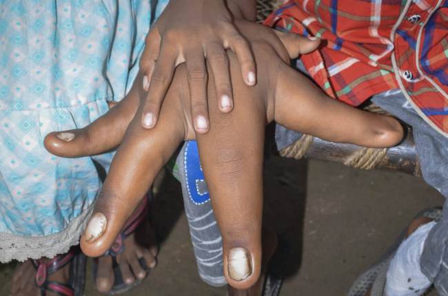 Um menino de oito anos de idade, foi afastado de sua escola depois suas mãos subiu para proporções gigantescas, maiores do que a cabeça.