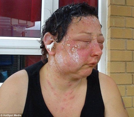 Ela tomou substâncias antialérgicas e foi dormir, mas pela manhã acordou com enormes “furúnculos” e decidiu procurar um médico. Os médicos prescreveram antibióticos e a liberaram. Ela foi atendida no Elizabeth Hospital, na Inglaterra.