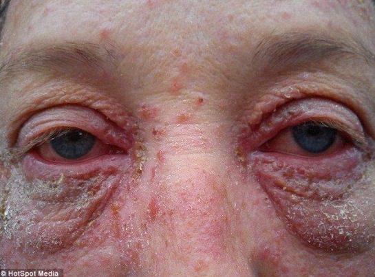Sua situação se agravou e os sintomas ganharam proporções maiores. Seu rosto começou a descascar e seus olhos ficaram extremamente inchados. Apesar de sentir fortes dores nos olhos, ela demorou mais de 30 dias para procurar um oftalmologista.