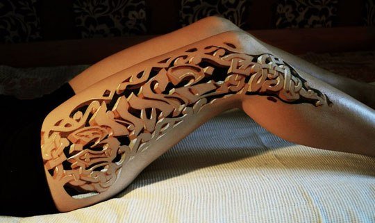 Arte da tatuagem com efeito de ilusão de ótica, o resultado é surpreendente.