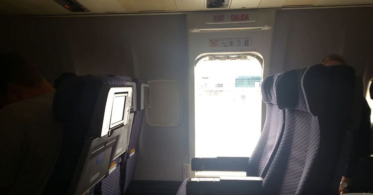 Porém uma passageira decidiu que já era o bastante. Ela abriu porta de emergência de avião da United Airlines e pulou.