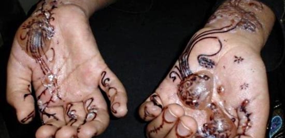 O alerta surgiu após o médico Imran Ansari, do Hospital Universitário Aga Khan, no Paquistão, relatar o caso. Ela havia aplicado a tatuagem nos braços e nas pernas durante dois ou três dias seguidos e uma vermelhidão e intensa coceira começou a aparecer. Os produtos químicos se espalharam por sua perna e ela precisou dar entrada com urgência ao hospital.