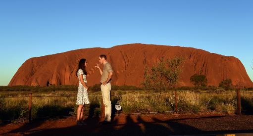 Ao chegar ao aeroporto de Yulara, depois de sobrevoar esta região também conhecida como Ayers Rock, o Duque e a Duquesa de Cambridge foram recebidos pelo chefe nativo Daisy Walkabout, que também deu há mais de 30 anos as boas-vindas aos pais de William.