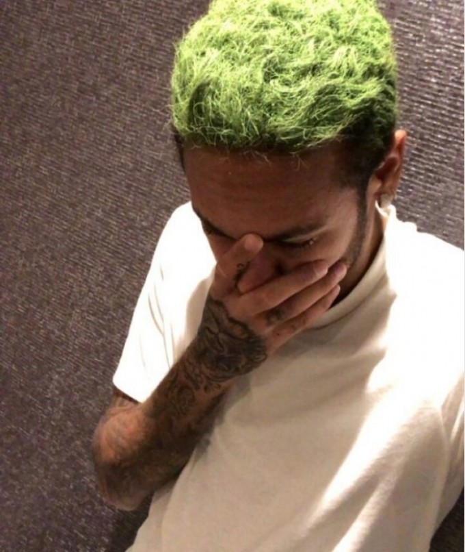 Neymar resolveu radicalizar no visual e pintou o cabelo de verde.