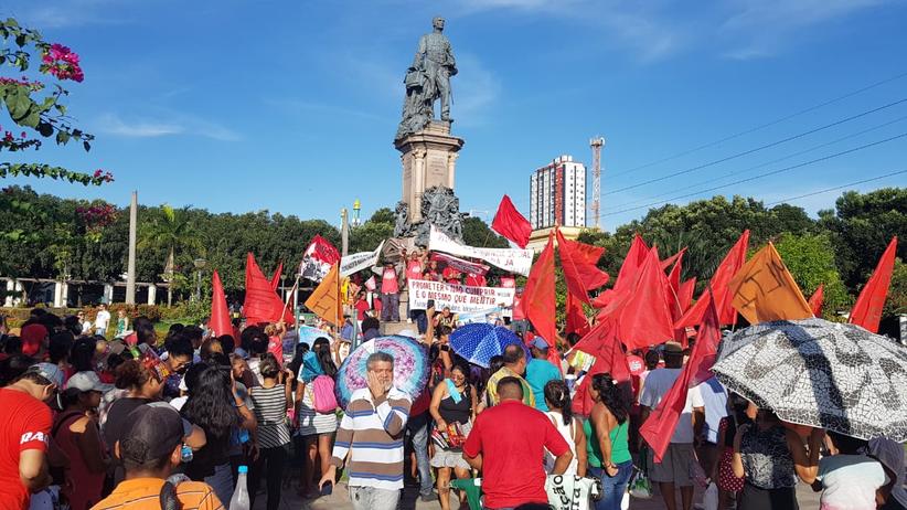 Entre as pautas, foram discutidas temas como Reforma da Previdência, cortes na educação e outros. Foram registrados representantes dos Sindicatos dos Metalúrgicos, Petroleiros, Servidores da Educação, Bancários. Com concentração na Praça da Saudade, os manifestantes seguiram pela Av. Epaminondas, Instalação, 7 de Setembro e Eduardo Ribeiro finalizando o ato com apresentações na Praça da Congresso.