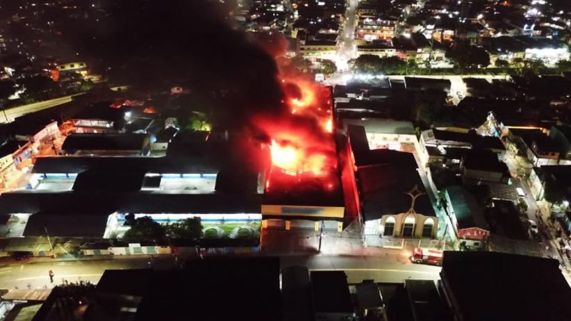 Imagens aéreas mostram fogo ‘engolindo’ antiga Esplanada em Manaus