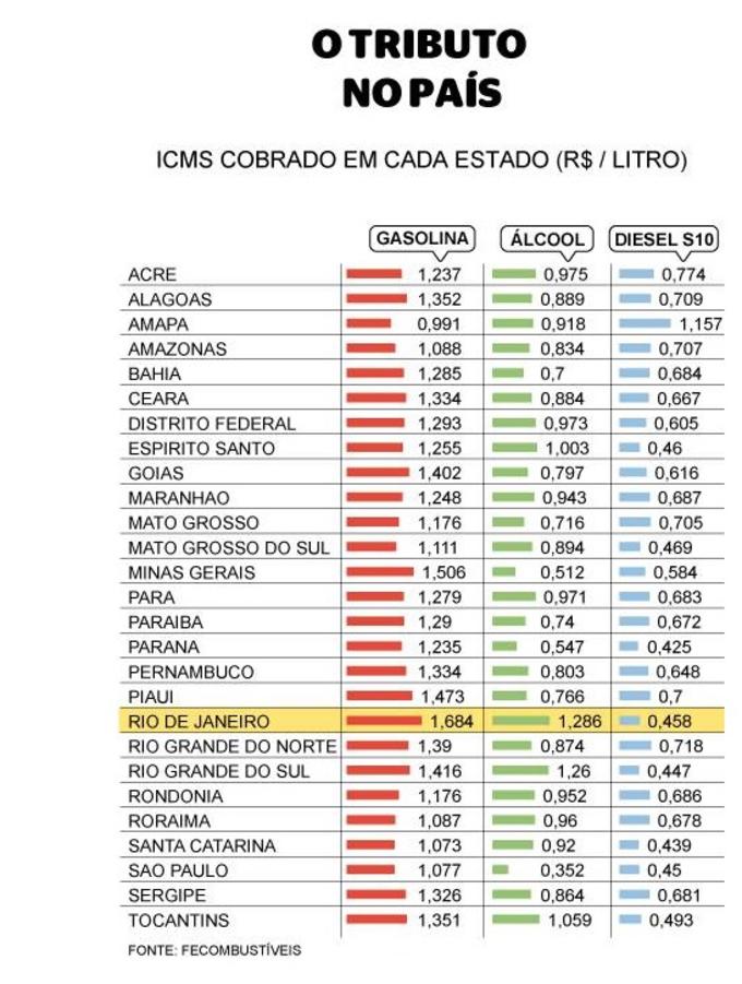 No último domingo, o presidente Jair Bolsonaro disse, por meio do seu perfil no Twitter, que o preço da gasolina e do diesel não cai por culpa dos governadores que não querem reduzir o ICMS (Imposto sobre Circulação de Mercadorias e Serviços) cobrado sobre o produto, já que o valor nas refinarias da Petrobras foi reduzido.