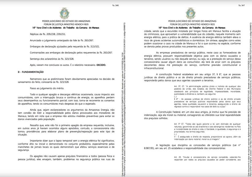 Manaus/AM - O juiz Abraham Peixoto, da 16ª Vara Cível e de Acidentes de Trabalho do Tribunal de Justiça do Amazonas (TJAM) emitiu sentença condenando a Amazonas Energia a pagar indenização de R$ 2 milhões pelo blecaute que ocorreu em Manaus, Iranduba e em Manacapuru, no ano de 2013. Na decisão, o magistrado disse que o apagão de aproximadamente duas horas e meia causou prejuízos financeiros aos consumidores e também apresentou riscos na segurança pública e no trânsito.