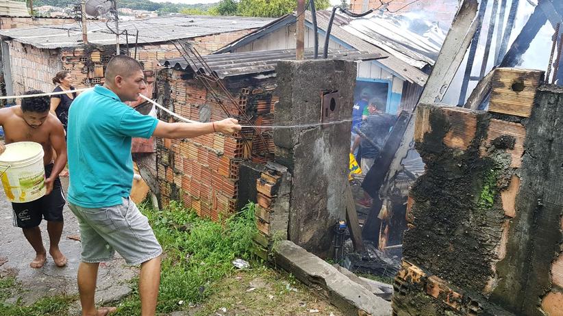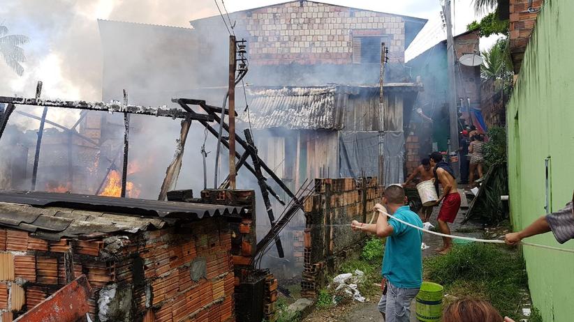 Manaus / AM - Um incêndio deixou 5 casas destruídas no beco Santa Rita, Rua Dom Pedro, Coroado 2, zona Leste de Manaus.