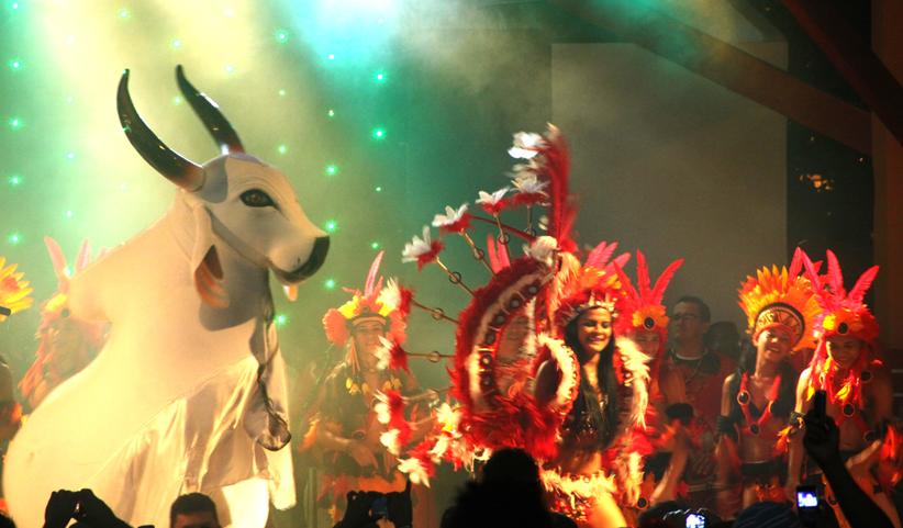 A Rainha do Folclore, Patrícia de Góes, apareceu na celebração da mistura de raças do branco, negro e índio. A morena do boi Vermelho e Branco encarnou a rainha Naruna, chefe das guerreiras Amazona Icamiabas.