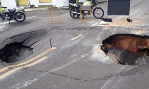 Cratera engole pista e causa transtornos no trânsito em Manaus