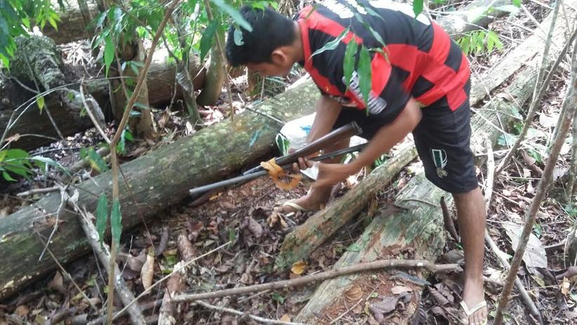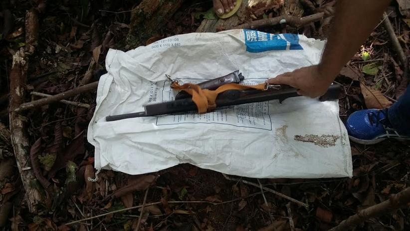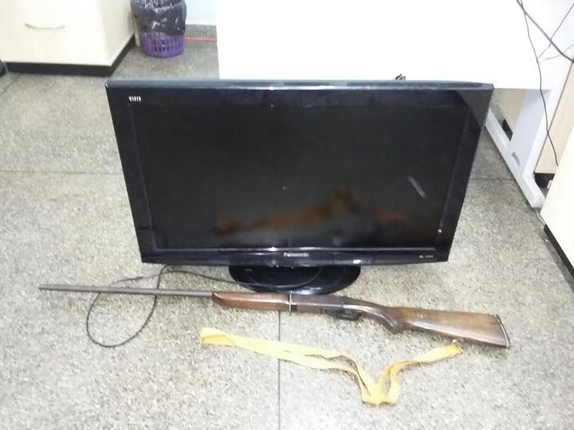 Conforme os depoimentos, a dupla informou onde estavam escondidos os objetos roubados, sendo uma televisão (LCD) e uma espingarda que pertenciam a vítima e que estavam enterrados próximos ao crime.