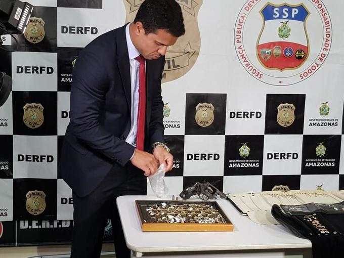 Manaus/AM - A polícia apresentou na manhã dessa sexta-feira (14), Jhonatan de Souza Rocha, 22, e Valderi do Rego Batista, 36, suspeitos de roubarem uma joalheria nessa quinta (13) no bairro Alvorada, na Zona Centro-Oeste.