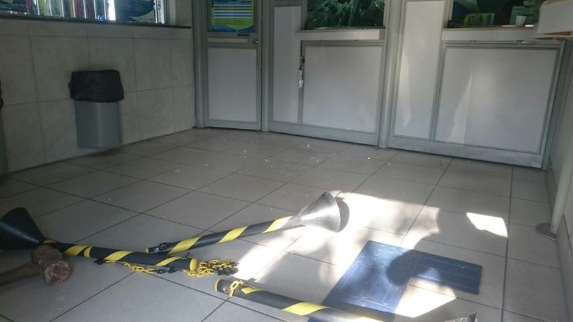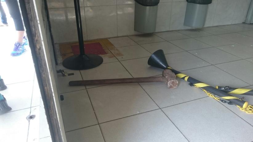 Manaus/AM - Pelo menos cinco bandidos tentaram assaltar na tarde desta terça-feira (1º) a loteria Muiraquitã, localizada na avenida Tefé, bairro Japiim I, zona Sul de Manaus. Armados, os criminosos tentaram render os funcionários, que perceberam a tempo a ação e se trancaram dentro do compartimento onde ficam os caixas. Os bandidos ficaram furiosos com a atitude dos colaboradores da loteria e utilizaram de uma marreta para tentar invadir o local, porém o vidro era à prova de bala e eles perderam muito tempo na ação e resolveram fugir sem levar nada.