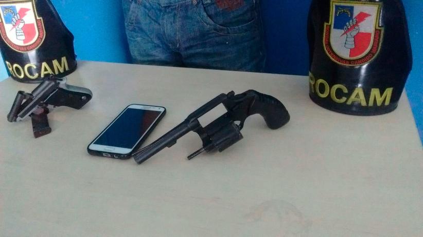 Policiais militares das Rondas Ostensivas Cândido Mariano (Rocam) chegaram até o suspeito após denúncias anônimas. Ele estava conduzindo uma motocicleta modelo CB 300, de cor preta, placa JXY 8022. Com o homem foi apreendido um revólver calibre 32, uma bereta e os celulares roubados das vítimas.