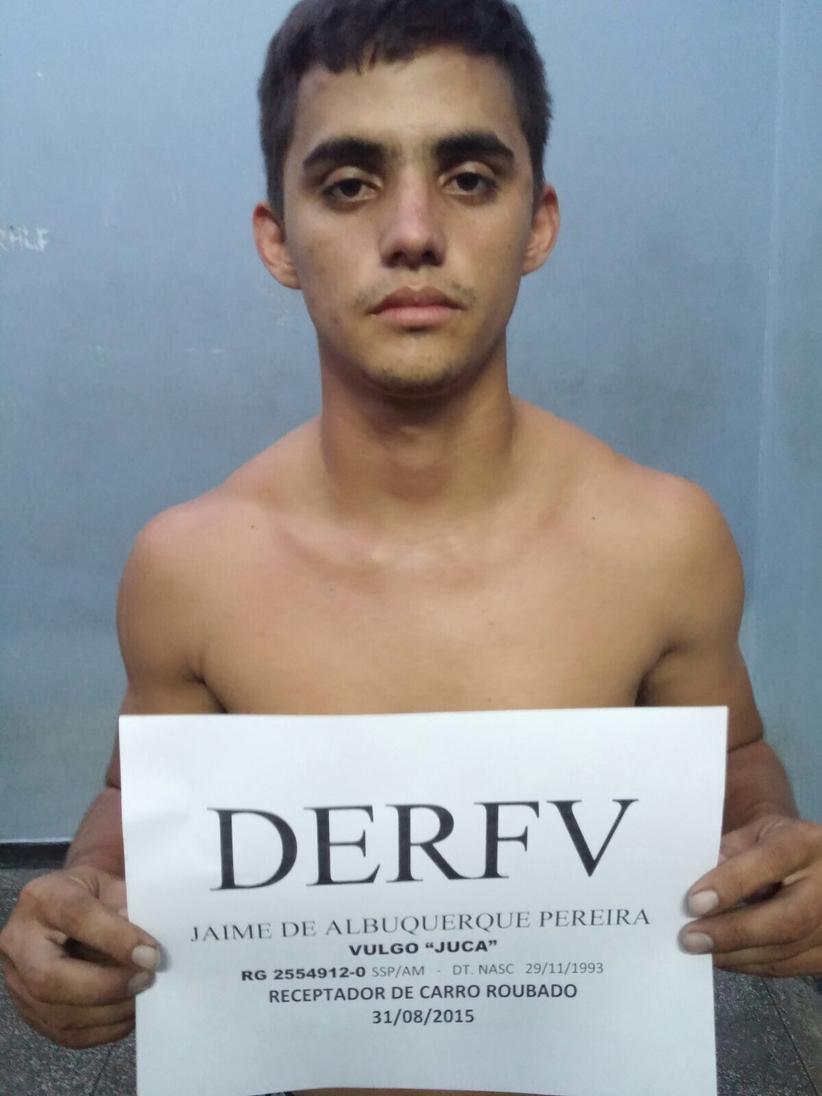 Manaus/AM - Jaime Albuquerque Pereira, 22, foi detido em flagrante após armazenar em um galpão de sua propriedade um carro roubado. O crime aconteceu no conjunto João Paulo II, bairro Nova Cidade, zona Norte de Manaus. Policiais civis da Delegacia Especializada em Roubos e Furtos de Veículos (Derfv) receberam uma denúncia anônima que o galpão de uma distribuidora de gás e água servia de estoque de veículos roubados. Ao chegar no local, os PCs encontraram uma Saveiro roubada de Roraima, de cor preta e placas NUJ 3240.