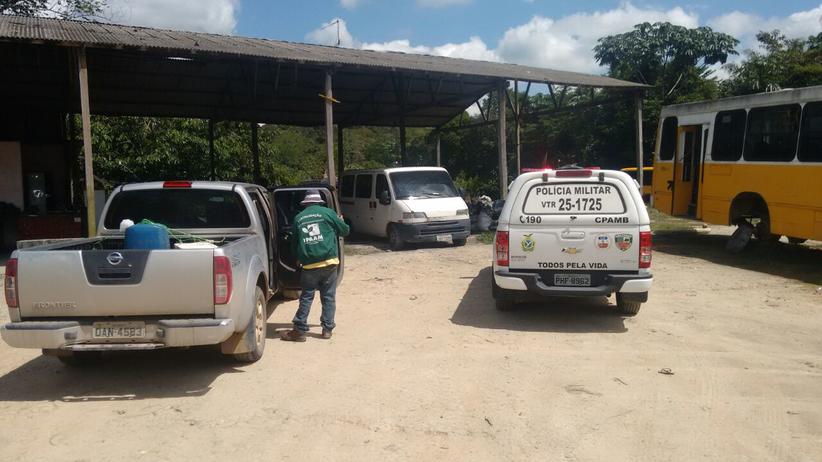 No local foi constatado a existência de cerca de duas toneladas de carvão ilegal distribuídas em 350 sacos de 3 kg, mais 40 sacos de 30 kg.