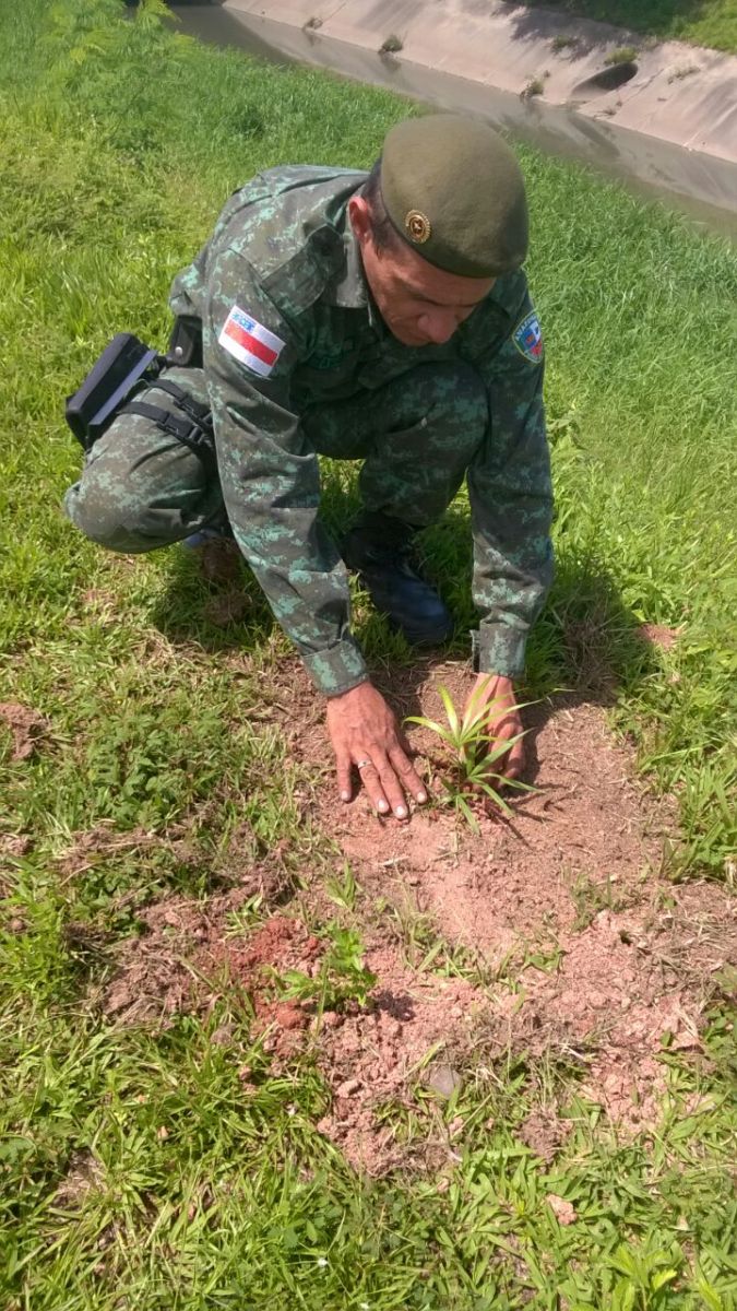 Manaus/AM - Policiais Militares do Batalhão Ambiental plantaram na manhã desta terça-feira (2) diversas mudas de plantas frutíferas às margens de um igarapé do bairro Alvorada 1, zona Centro-Oeste de Manaus.