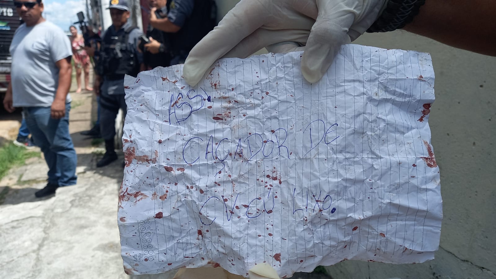 No bilhete, o assassino escreveu: “Eu somava na safadeza do Alan Índio. Hoje estou no inferno por isso. Aguardo vcs que faz safadeza também aqui. Vou guardar um canto aqui pra vcs”. Ele também assinou o recado como "assassino de CV c* lixo".