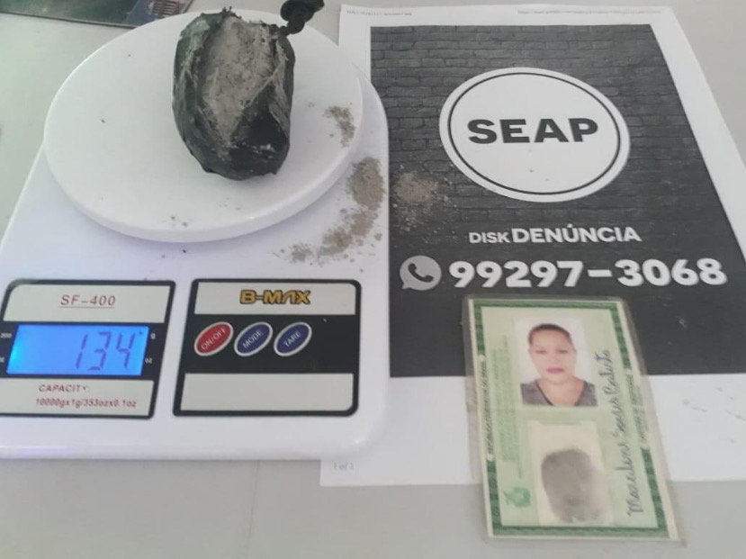 Ainda no domingo, o Compaj voltou a registrar mais uma ocorrência, desta vez com Marcilene Soares Batista. A visita estava com 134 gramas de cimento envolto de um plástico. O material ilícito escondido nas partes íntimas, também foi detectado pelo body scanner.
