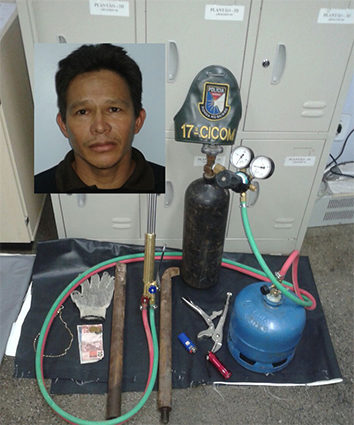 Os três portavam um cilindro de oxigênio, maçarico, pé-de-cabra, além de duas lonas de plástico e mochila com outras ferramentas.