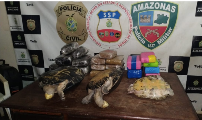 Durante a operação ‘Embarque Seguro’, policiais militares faziam revistas no barco A. NUNES quando encontraram drogas e quelônios. De acordo com a PM, a droga estava distribuída entre caixas de isopor, mochila e um saco preto. Ao todo, 18 tabletes de “skunk" com aproximadamente 21 quilos e 02 tabletes de pasta base de cocaína, pesando cerca de 5 quilos foram apreendidos. No porão do barco, próximo às drogas também foram encontrados 03 quelônios.