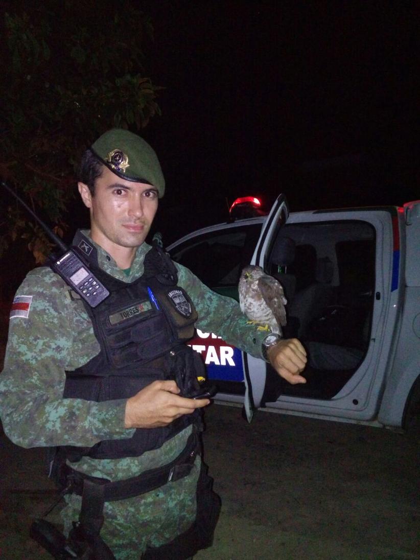 Os militares fizeram o resgate do gavião e o conduziram até o Ibama, onde o animal será tratado e posteriormente solto ao habitat natural.