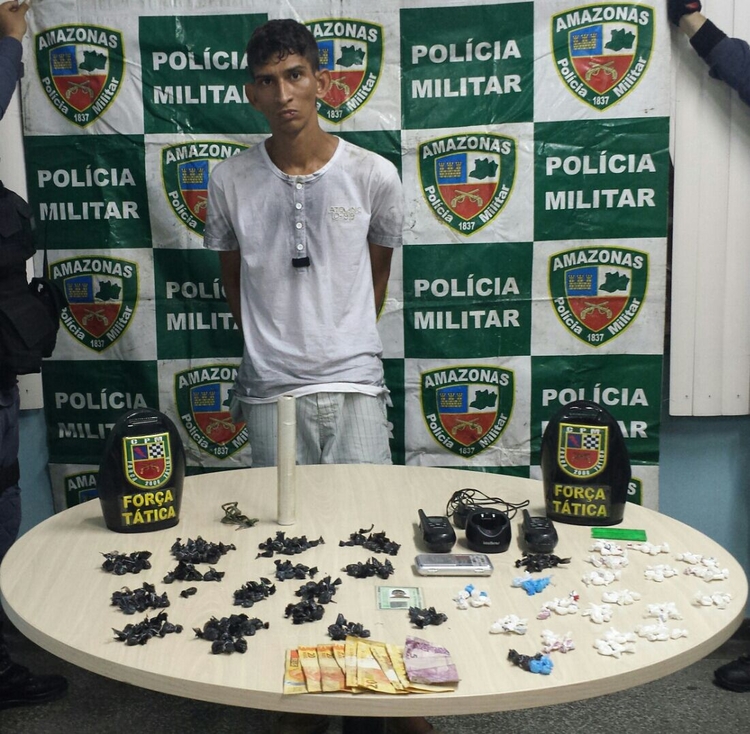 Manaus/AM - O foragido da justiça Gustavo Henrique Alves de Souza, 28, foi detido em flagrante com drogas na quitinete onde morava na rua Salmon, conjunto Francisca Mendes, bairro Cidade Nova, zona Norte de Manaus.
