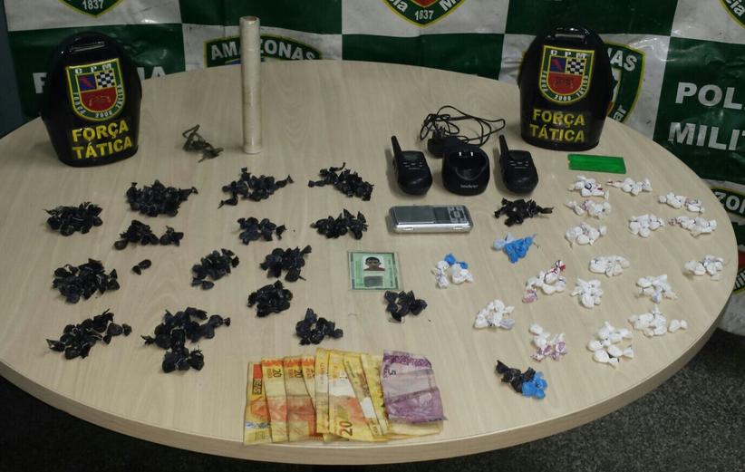 Os policiais militares da Força Tática faziam o patrulhamento da área quando se depararam com o homem. Após revista pessoal foram encontrados com ele 40 trouxinhas de entorpecentes e a quantia em dinheiro de R$ 165,00 proveniente do tráfico. Depois de questionado sobre a origem do produto, o homem conduziu os militares até a quitinete onde residia. Lá, foram encontrados mais 259 porções de oxi, balança de precisão e rádios comunicadores.