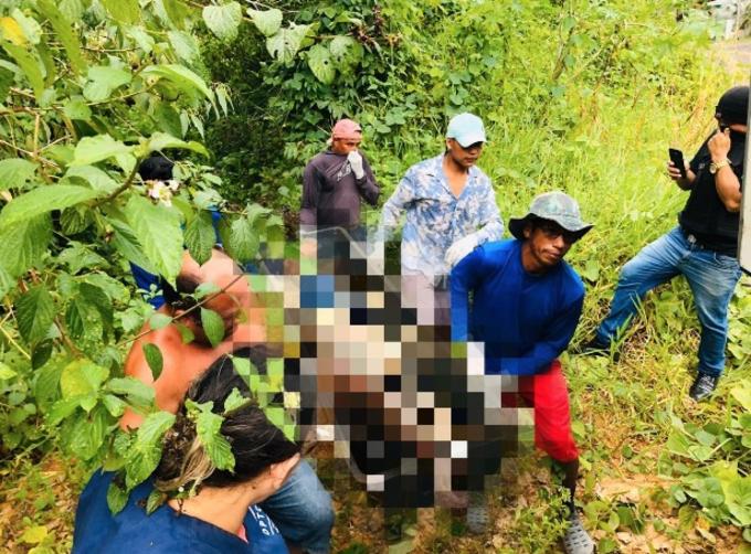 De acordo com a polícia, o corpo foi encontrado por volta das 12h em uma área de mata, por um morador que passava pelo local.