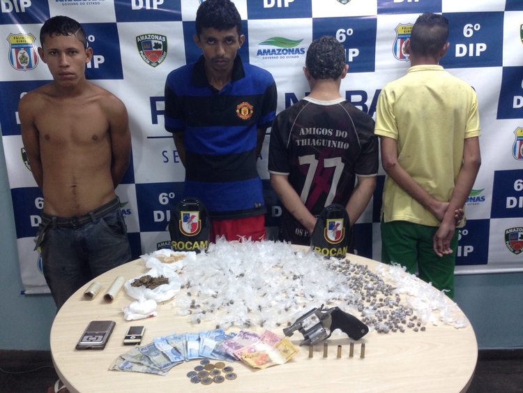 No momento da prisão foram encontradas diversas porções de maconha e um revólver calibre 38 com o grupo, que foi encaminhado ao 6º Distrito Integrado de Polícia (DIP), na Cidade Nova. Os menores de idade foram conduzidos à Delegacia Especializada em Apuração de Atos Infracionais (Deaai).