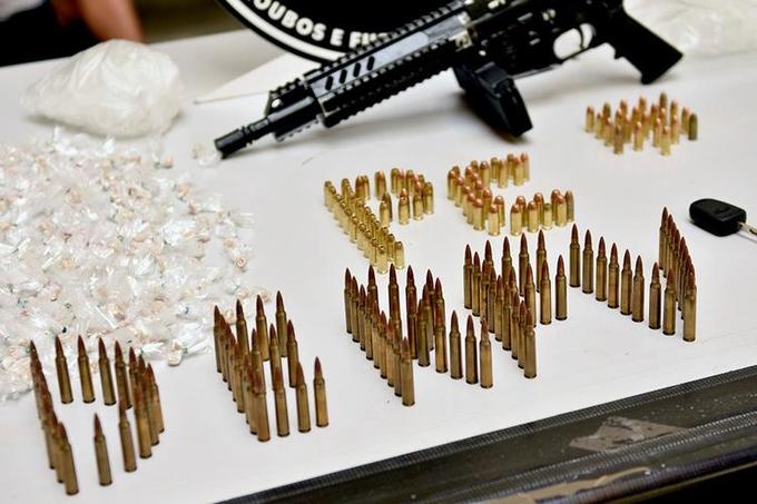 Com eles a polícia apreendeu um carro roubado, uma fuzil calibre 556 de uso exclusivo das Forças Armadas e centenas de munições, além de porções de drogas.