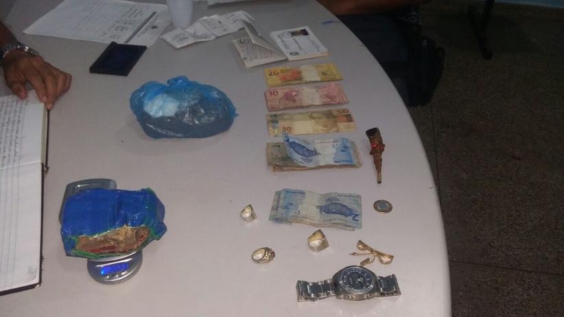 A prisão aconteceu na casa do acusado, na rua Olavo Bilac, bairro Santa Helena. Com Jhon foi encontrado 200g de pasta a base de cocaína, 123g de maconha, jóias, balança de precisão e R$ 337,00 em espécie.