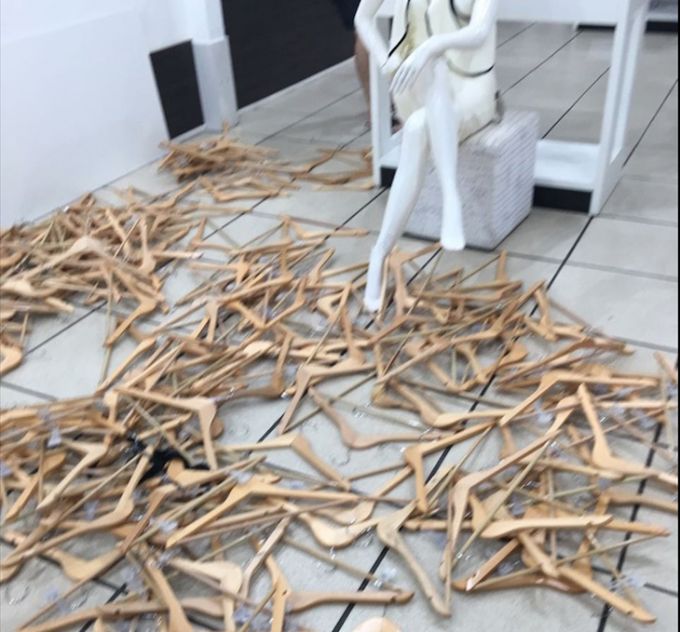 Alem das mercadorias, a quadrilha levou joias, TV, computador, frigobar, cortina e o carpete do local, onde agora só se ver um manequim e araras vazias.