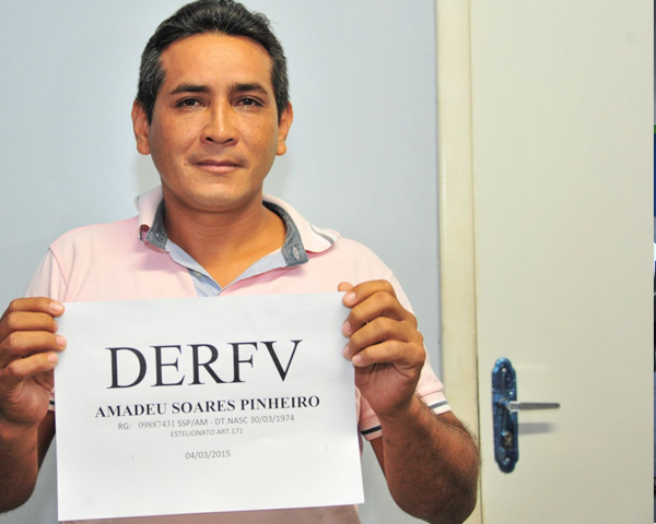A Polícia Civil do Amazonas, por meio da equipe de investigação da Delegacia Especializada em Roubos e Furtos de Veículos (Derfv), prendeu na manhã desta quarta-feira, 4, um homem apontado por envolvimento em um caso de estelionato. Amadeu Soares Pinheiro, 40, foi preso enquanto tentava sacar cerca de R$ 15 mil reais oriundos da venda de um veículo furtado de dentro de uma concessionária na zona Centro-Sul de Manaus.