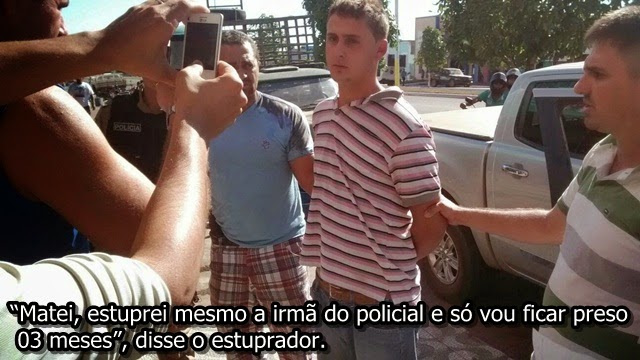 O autor Welton, que foi preso no Maranhão, onde havia vendido a moto da vítima por R$ 1.800, dá risadas e ironiza o crime que cometeu. “Eu estuprei mesmo, matei mesmo a irmã do policial, vou ficar uns 03 meses preso, mas nem que demore um pouco mais não vou reclamar, pelo menos assim eu engordo mais”. Essas foram as últimas palavras deixadas pelo psicopata, momento antes de ser preso.