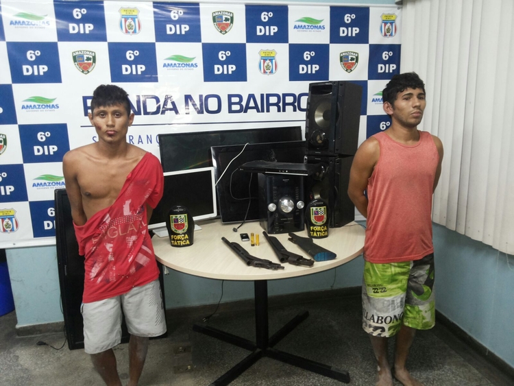 Manaus/AM - Uma família foi feita refém por bandidos na madrugada desta terça-feira (17) por quase duas horas durante o roubo à residência. O crime aconteceu na rua 12, bairro Cidade Nova II, zona Norte de Manaus. A quadrilha era composta de dois adultos e um adolescente de 17 anos. Eles foram identificados como Rodrigo Azevedo chaves, 22, e Carlos Geovane Liborio de Souza, 21. Durante a ação, um deles ainda tentou estuprar Íngride Nonato Mota, 18 e agrediu fisicamente Cintia Costa França,36.