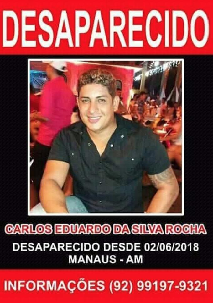 Manaus/AM - Carlos Eduardo da Silva Rocha,30, está desaparecido desde o último dia 2 de junho após sair de casa sem informar para onde ia. Familiares e amigos pedem ajuda aos leitores do Portal do Holanda para localizar o homem.