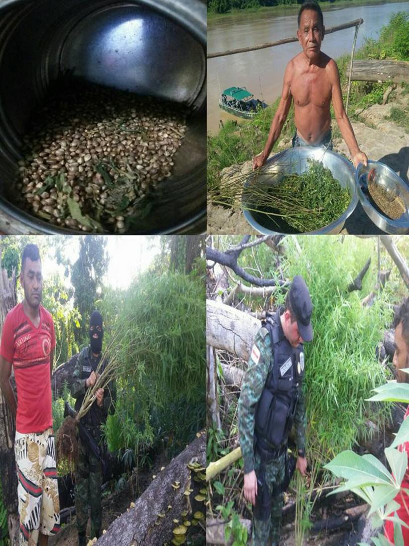 Na sexta (12), por volta das 16h, os militares localizaram uma plantação de maconha, cultivada por uma família. O plantio abastecia o município de Pauini. No local foram apreendidos uma grande quantidade do entorpecente que secava em uma bacia, além de sementes da droga. Também foi encontrado na casa dos suspeitos uma espingarda calibre 36. No terreno da família havia pelo menos 30 pés de maconha, que logo foram arrancadas pelos PMs da 5ª CIPM. No total, pelo menos 30 kg do produto foram removidos.