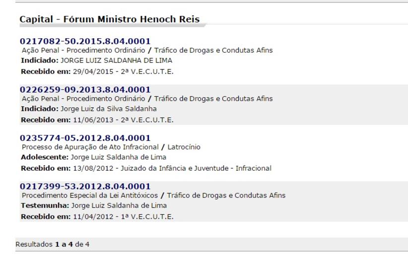 O rapaz morreu na hora, e o corpo foi removido pelo Instituto Médico Legal (IML). Jorge Luiz Saldanha respondia na Justiça por tráfico de drogas.