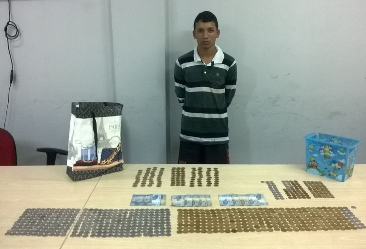 Mateus Alves dos Santos, de 19 anos, foi preso em flagrante após roubar várias moedas em uma loja localizada na Avenida Noel Nutels, Cidade Nova, Zona Norte de Manaus.