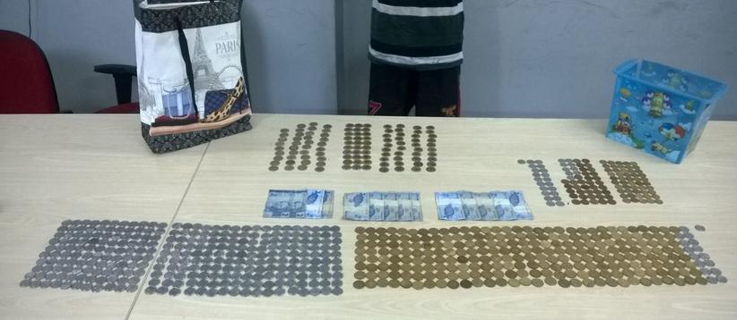 Jovem é flagrado roubando moedas e deixa tudo cair durante fuga