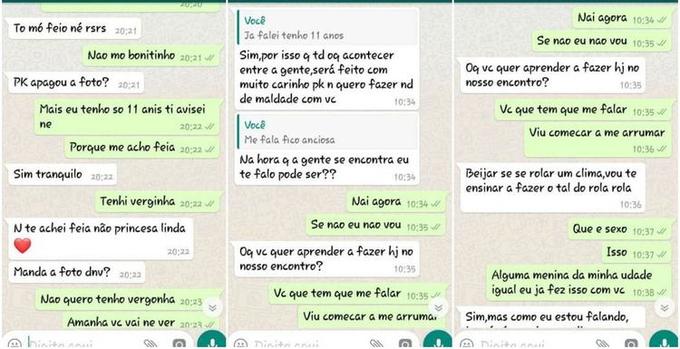 A mãe da menina procurou a polícia e foi orientada a se passar pela filha na conversa para combinar um encontro com o homem. Dede o início do bate-papo, a criança avisa que tem 11 anos e mesmo assim, ele continua insistindo. “Eu te ensino a beijar, se você quiser”, escreveu.