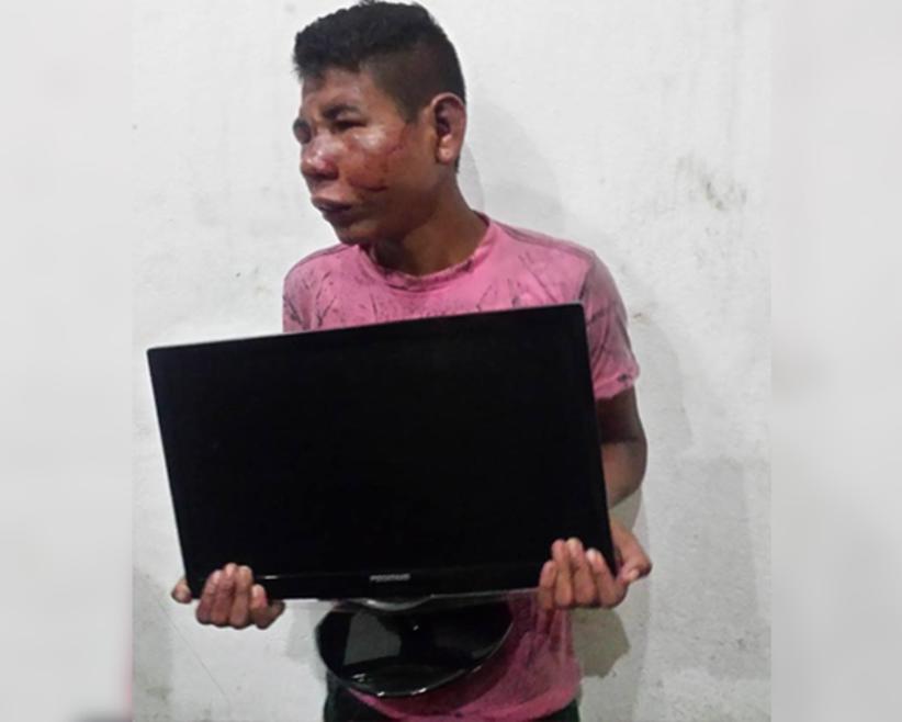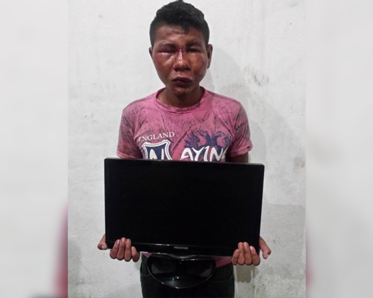 Manaus/AM - Um homem identificado como Maikon Denys Carvalho Batista levou uma surra da população na avenida Autaz Mirim, bairro São José, zona Leste de Manaus. O roubo de um monitor de computador teria sido o motivo da agressão física em massa. O dono do produto gritou em alto e bom som durante a fuga do criminoso “Pega ladrão!” e os rapazes da rua no contaram conversa e esquentaram o couro do suspeito, que torceu para que os policiais militares da 9ª Companhia Interativa Comunitária (Cicom) chegassem logo para salvá-lo dos socos e chutes do povo enfurecido.