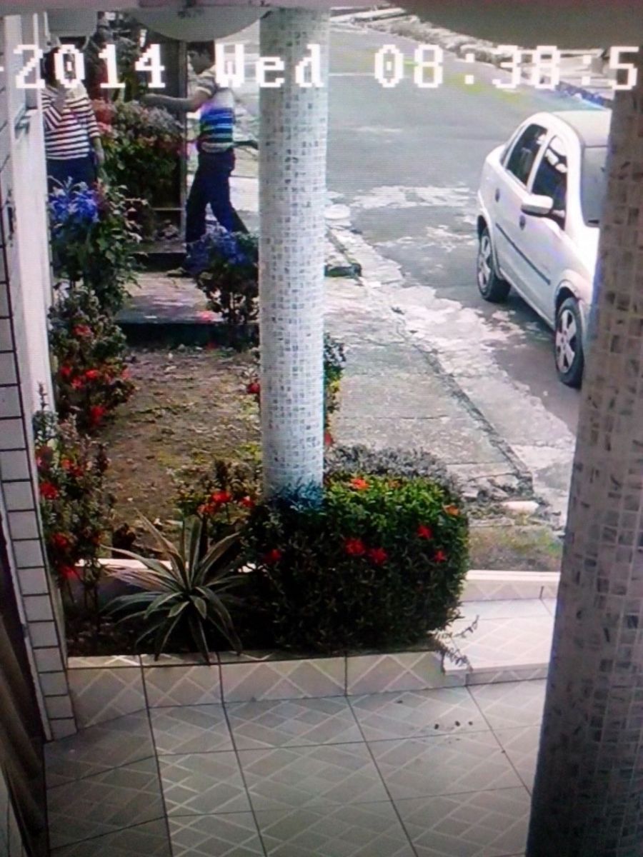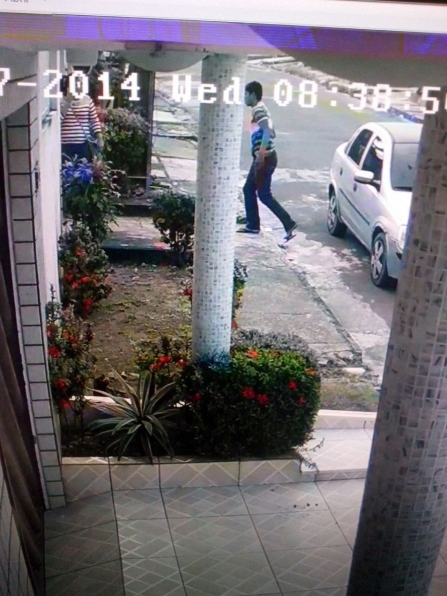 Ao sair de casa, a mulher percebeu que sua sandália havia quebrado e resolveu retornar. Enquanto aguardava o marido abrir o portão, foi abordada. Na abordagem ese dizendo armado, o sujeito assaltou a bolsa com documentos e cartões da vítima assim como seu celular. Câmeras de segurança flagraram toda a ação e você pode ajudar a polícia a identificar os ladrões. Veja: